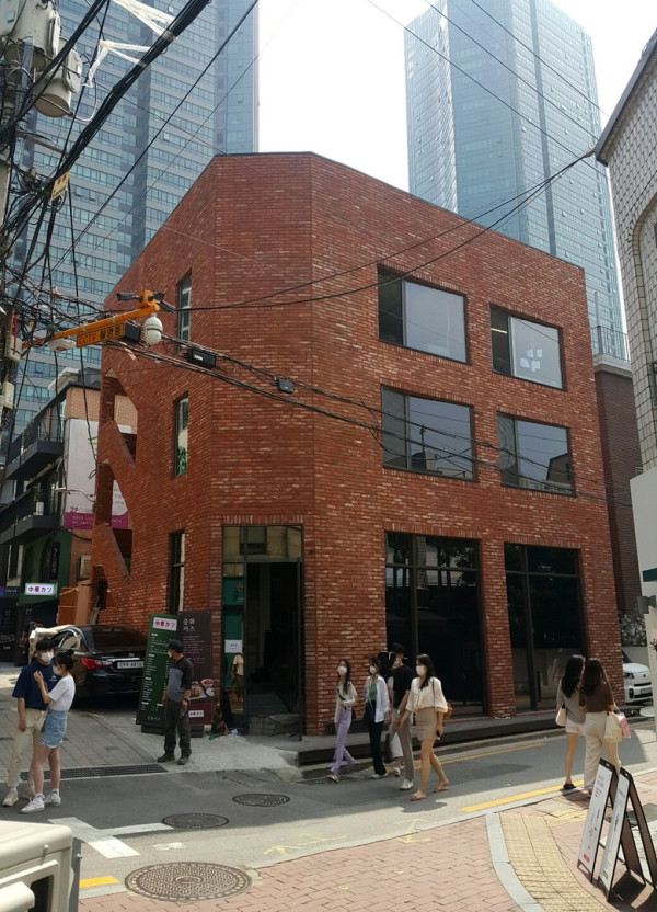 그래서 외장벽돌(벽돌타일)은 시공 후 일부 착색하는 과정을 거쳤다.